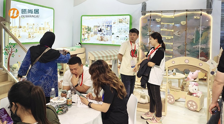 展會現場,溫尚攜其精心研發的全新系列幼兒園家具教玩具產品亮相。吸引了眾多幼教同仁駐足參觀、詢問。