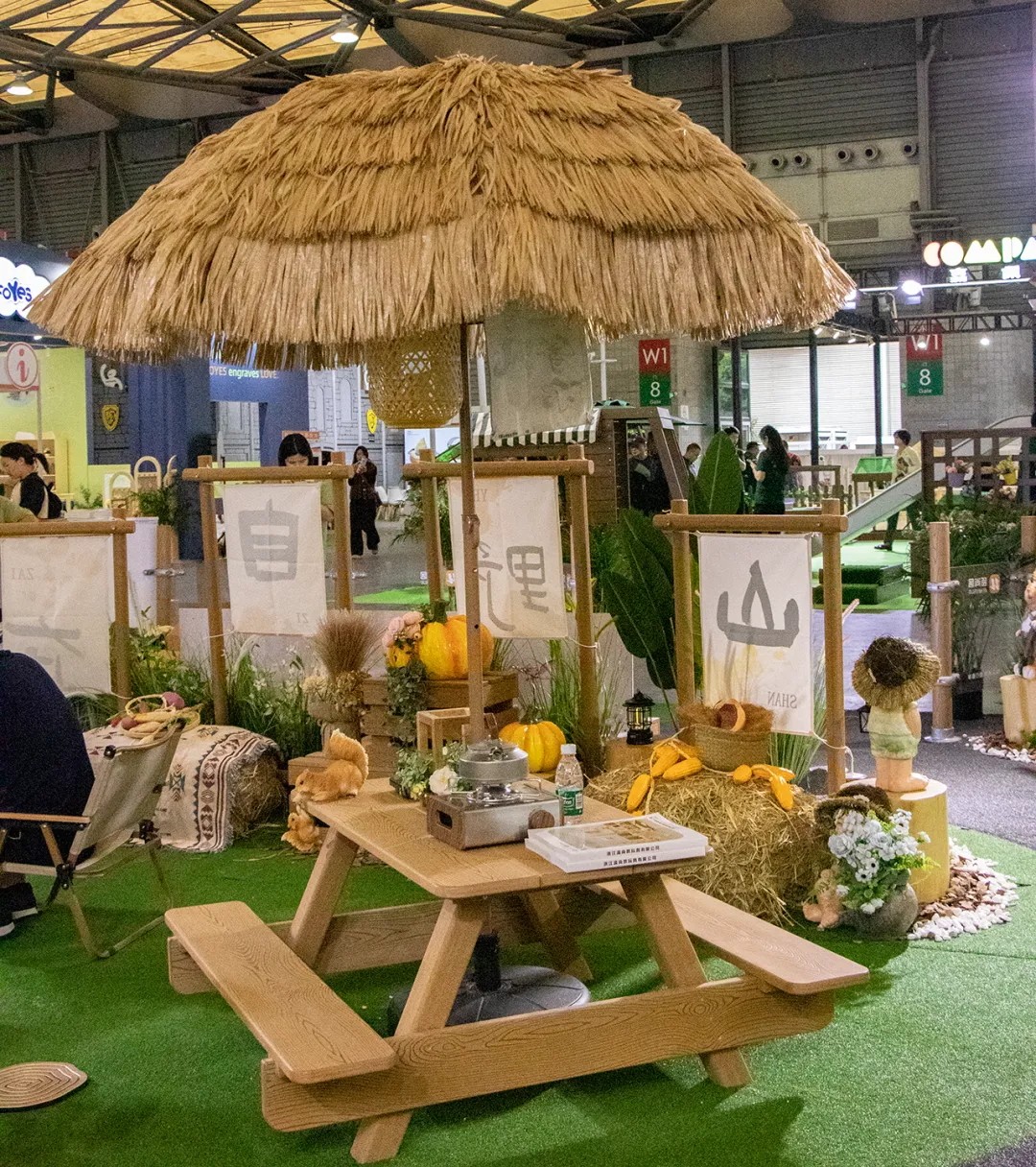 本次參展的戶外系列產(chǎn)品,使用了新型環(huán)保材料“香積木”,具有防水防潮防腐、環(huán)保安全無毒、著色性良好、觸感溫潤、耐候性強(qiáng)、抗疲勞耐高溫、防滑耐磨等優(yōu)點(diǎn)。