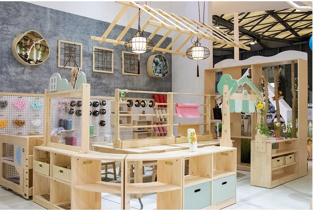 本次展會(huì)上展出了溫尚設(shè)計(jì)的托育愛丁堡系列、國潮中式系列等最新系列幼兒園家具。造型獨(dú)特、自由搭配。溫馨的設(shè)計(jì)給小朋友帶來自主的游戲空間。